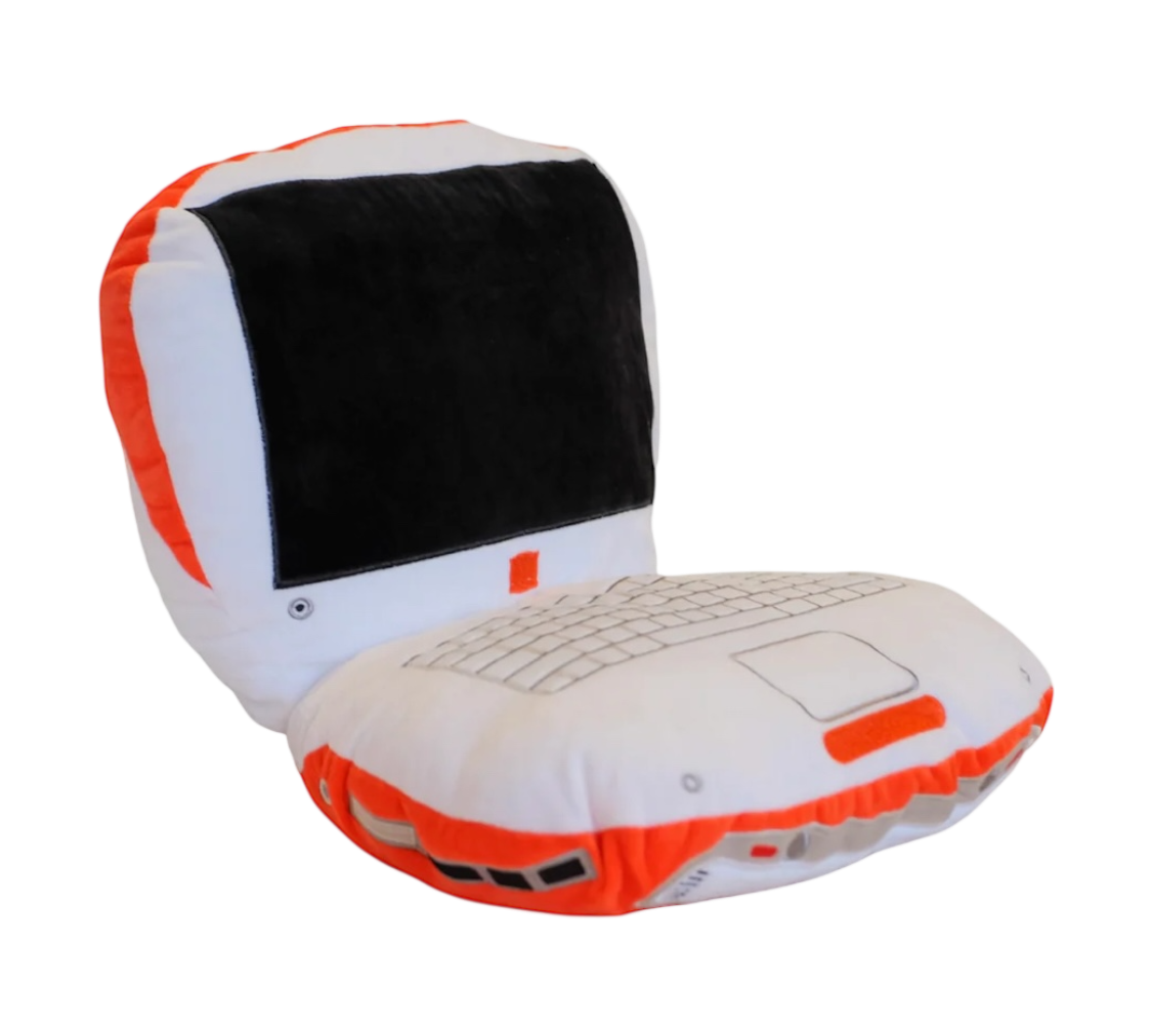 This bright and soft plush pillow is sure to bring back nostalgic memories and add a spark to your home. Inspired by the beloved tangerine colored laptop we know and love, this highly detailed throw pillow is the perfect addition to your geeky life.